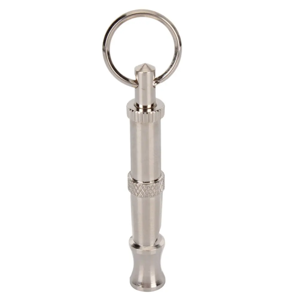 The dog whistle has adjustable for active control of the frequency produced. When you blow on the whistle, you can hear the secondary sound made by the air forced through the metal tubing.